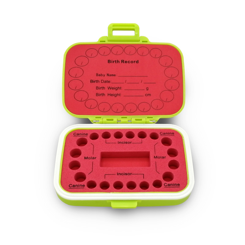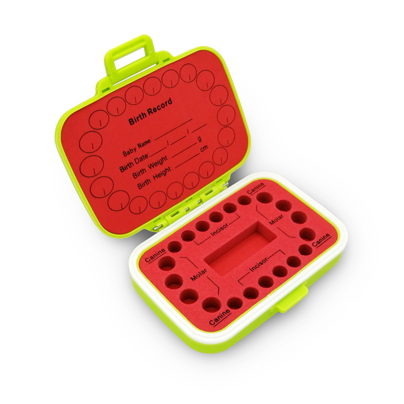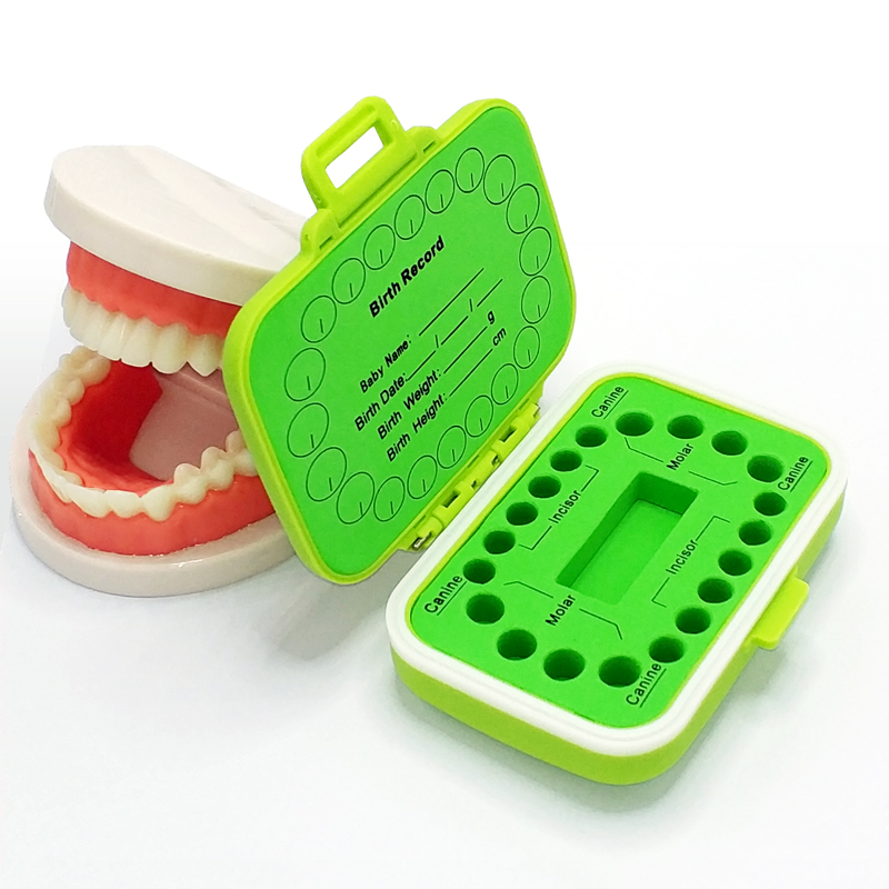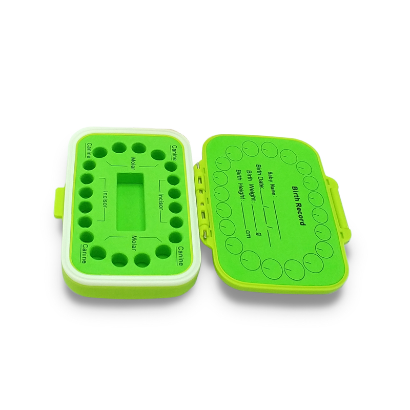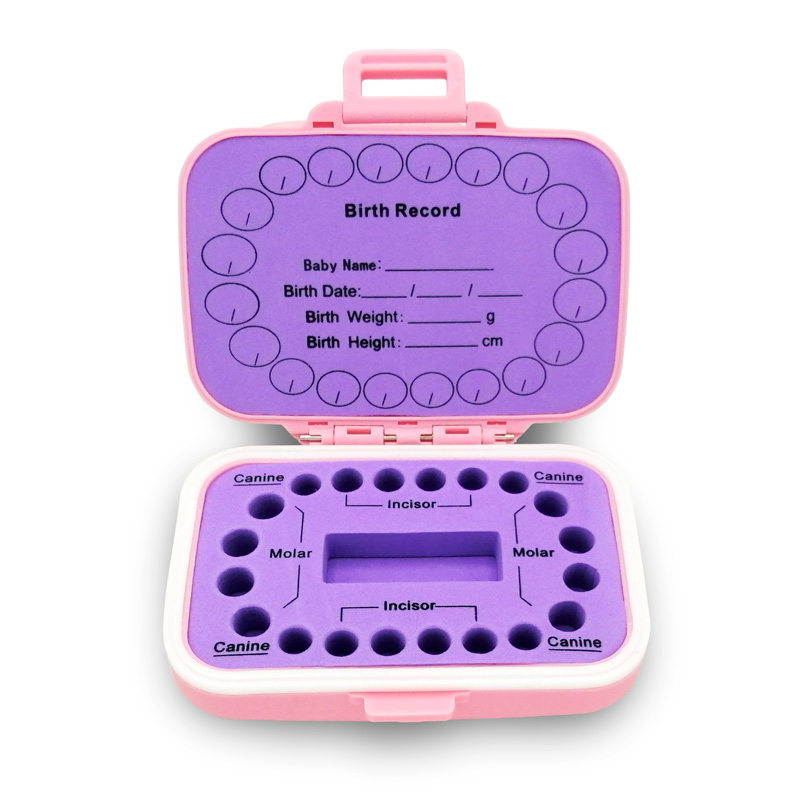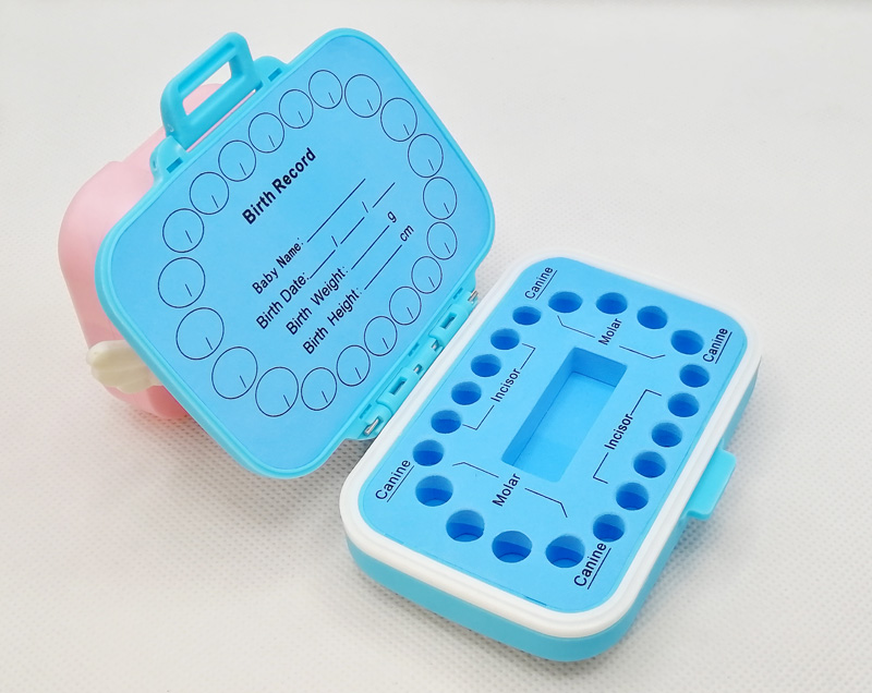 Cute and Practical Design: The baby teeth box is designed with 20 slots to store the lost teeth. The flexible ABS lining can fix the deciduous teeth firmly and prevent the teeth from sliding when opened. The big slot in the middle is for storing the tweezers and tube